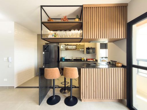 - Área privativa: 78m²; - Sala em 2 ambientes com revestimento tijolinho e espelho piso teto; - Cozinha americana já com fogão; - Varanda gourmet com fechamento em vidro; - Vista Livre e Permanente; - 3 dormitórios, sendo 1 Suíte - todos com armário planejado e ar condicionado; - Banheiro Social; - 1 vaga de garagem com posição privilegiada no primeiro subsolo;