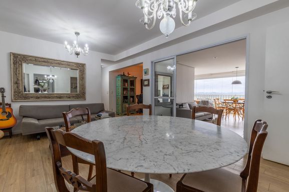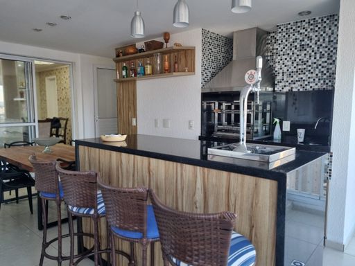 - 125m² - 4 quartos, sendo duas suítes - Sala em dois ambientes - Varanda gourmet toda decorada - Apartamento com armários embutidos, piso em madeira maciça e parcialmente mobiliado - Cozinha completa - Adega - Churrasqueira e uma linda mesa de jantar - Ar condicionado split nas salas e suítes - Cortina de vidro e persianas novas - Dispensa com armários - Banheiro social e de serviço - 2 vagas de garagem - Sol da tarde