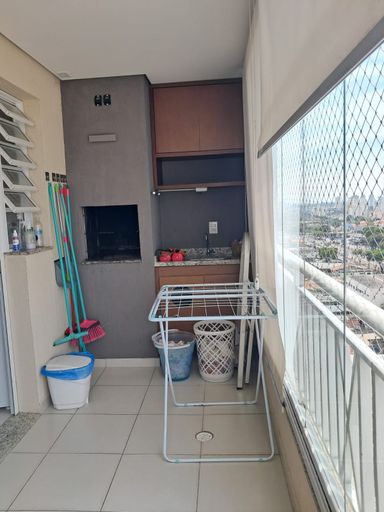 * Varanda com fechamento de vidro e Churrasqueira a carvão