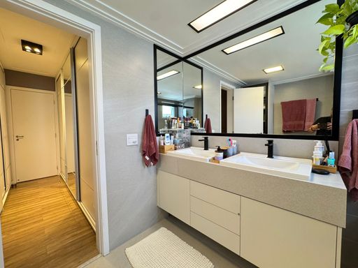 Apartamento andar alto e sol da manhã, conta com projeto de interiores feito por arquiteto, inteiro reformado, com acabamentos modernos, marcenaria da linha Florence e Costa flores por todo apartamento, iluminação embutida em gesso, cozinha com eletrodomésticos Eletrolux e Eletromec, além de ar cond. por todo imóvel.