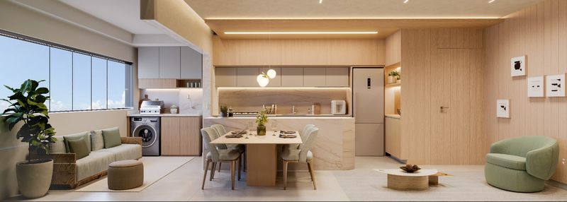 O Art Paisage oferece apartamentos de 56m², 71m² e 76m², com opções de 2 ou 3 dormitórios, suíte, varanda gourmet e plantas flexíveis que valorizam cada metro quadrado.