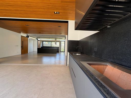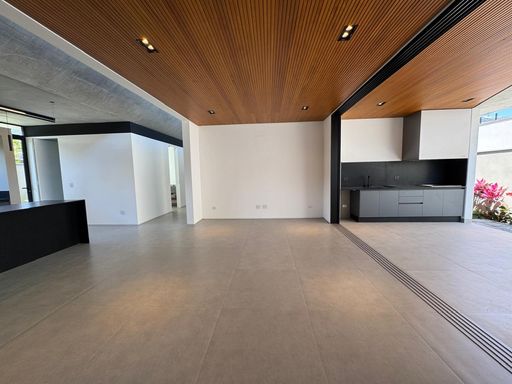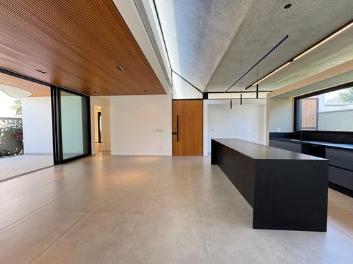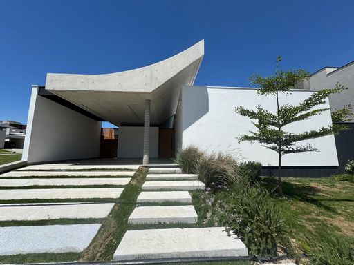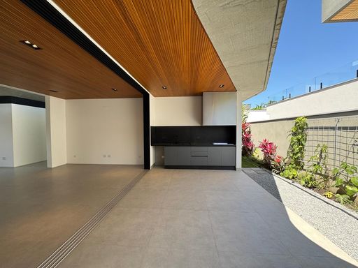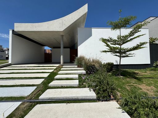 - Casa térrea contemporânea com integração da área social (salas de estar/TV, jantar, cozinha e gourmet)