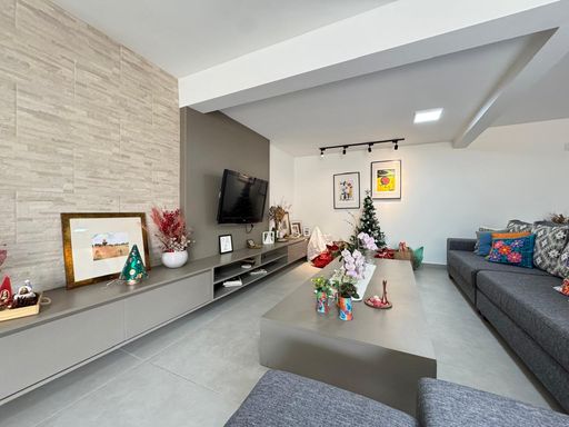 * Ampla sala de entretenimento familiar, com painel e hack planejados